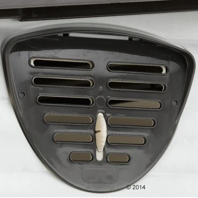 La espaciosa casita ahorra mucho espacio de manera única ya que la pared lateral es plegable gracias a unas bisagras. Las ranuras de ventilación del panel posterior pueden ajustarse manualmente mediante una palanquita para garantizar así un óptimo intercambio de aire. La abertura de la entrada está reforzada con aluminio para resistir los dientes de los perros y da a la caseta una estabilidad adicional.