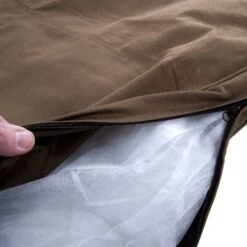 Cojín con relleno suave y mullido para perros. Su grosor mantiene al perro protegido del frío del suelo. La funda, de color marrón, se puede quitar y lavar a 30°C máx.