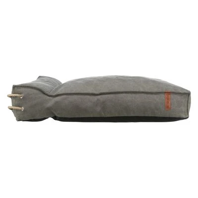 Colchón para perros con funda extraíble y lavable a máquina, con borde elevado en un lateral, bonito diseño naútico y tacto de lona. Con cuerda decorativa. Color gris oscuro.