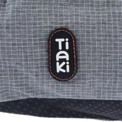 - Aspecto clásico con detalles en las costuras, un delicado estampado de cuadros y un elegante color gris, complementado con el logotipo TIAKI distintivo.