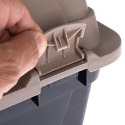 - Materiales: Caja de transporte: plástico reciclado (PP, polipropileno); Rejilla: acero (con recubrimiento de polvo de poliéster epoxi).