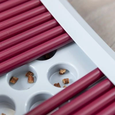 Juego de inteligencia para gatos, tablero con muchos escondites para snacks, para entretenimiento y entrenamiento mental, instrucciones de juego incluidas, mide: 35 x19,5 cm (LxAn)