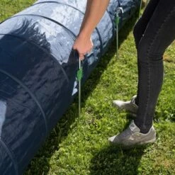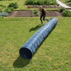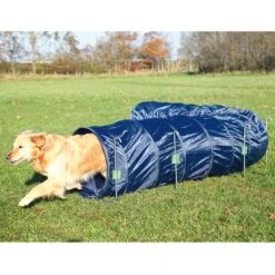Túnel fabricado de acuerdo a los estándares de la Féderation Cynologique Internationale (F.C.I.). Tiene un diámetro de 60 cm y mide 5 metros de largo.